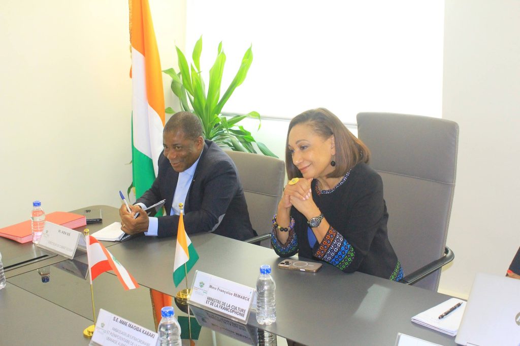 Le Liban est le pays invité d’honneur de la prochaine édition du Salon du Livre, événement majeur du calendrier culturel ivoirien. Ce sujet a été au cœur de l’audience accordée par Madame Françoise Remarck, Ministre de la Culture et de la Francophonie, à Son Excellence Madame Magida Karaki, Ambassadeur extraordinaire et plénipotentiaire de la République libanaise auprès de la Côte d’Ivoire, ce mardi 10 février 2026.
