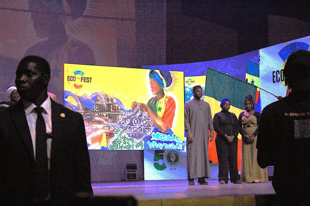 Le Premier Ministre du Sénégal, Ousmane SONKO, représentant le Chef de l’État, a ensuite pris la parole. Dans son Il adresse, il a exprimé, au nom du Président, ses encouragements aux initiateurs du projet et invité la jeunesse ouest-africaine à s’approprier cette dynamique culturelle porteuse de stabilité et de développement. Il a également exhorté la CEDEAO et l’UEMOA à pérenniser ce cadre de brassage et d’intégration régionale. En outre, souhaitant la bienvenue aux festivaliers, il les a encouragés à profiter pleinement de leur séjour en terre de la teranga avant de déclarer officiellement ouverte la première édition d’ECOFEST.