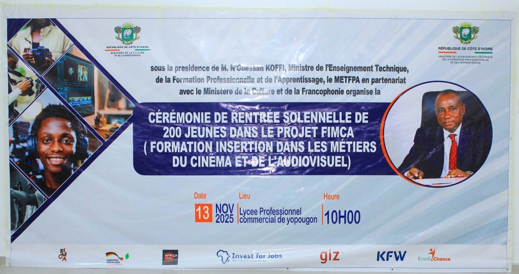 La cérémonie de rentrée solennelle du projet Formation Insertion dans les Métiers du Cinéma et de l’Audiovisuel (FIMCA), qui s’est tenue ce 12 novembre 2025 au lycée professionnel commercial de Yopougon, marque une étape significative pour 200 jeunes engagés dans cette initiative.